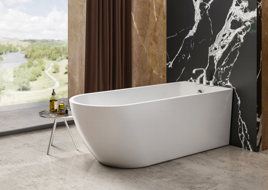 Roll Top Bath Company Grace Freestanding Bath – D Shaped Acrylic Back-to-Wall Bathtub