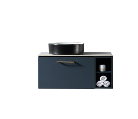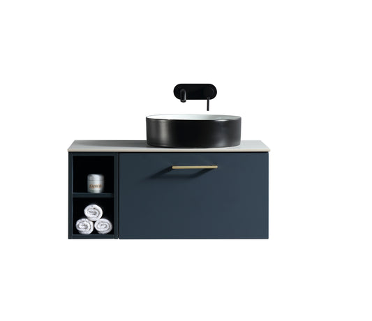Tailored Bathrooms Piatta 800mm Wall Hung Vanity with Side Storage – Left Hand Sintered Stone Counter Top